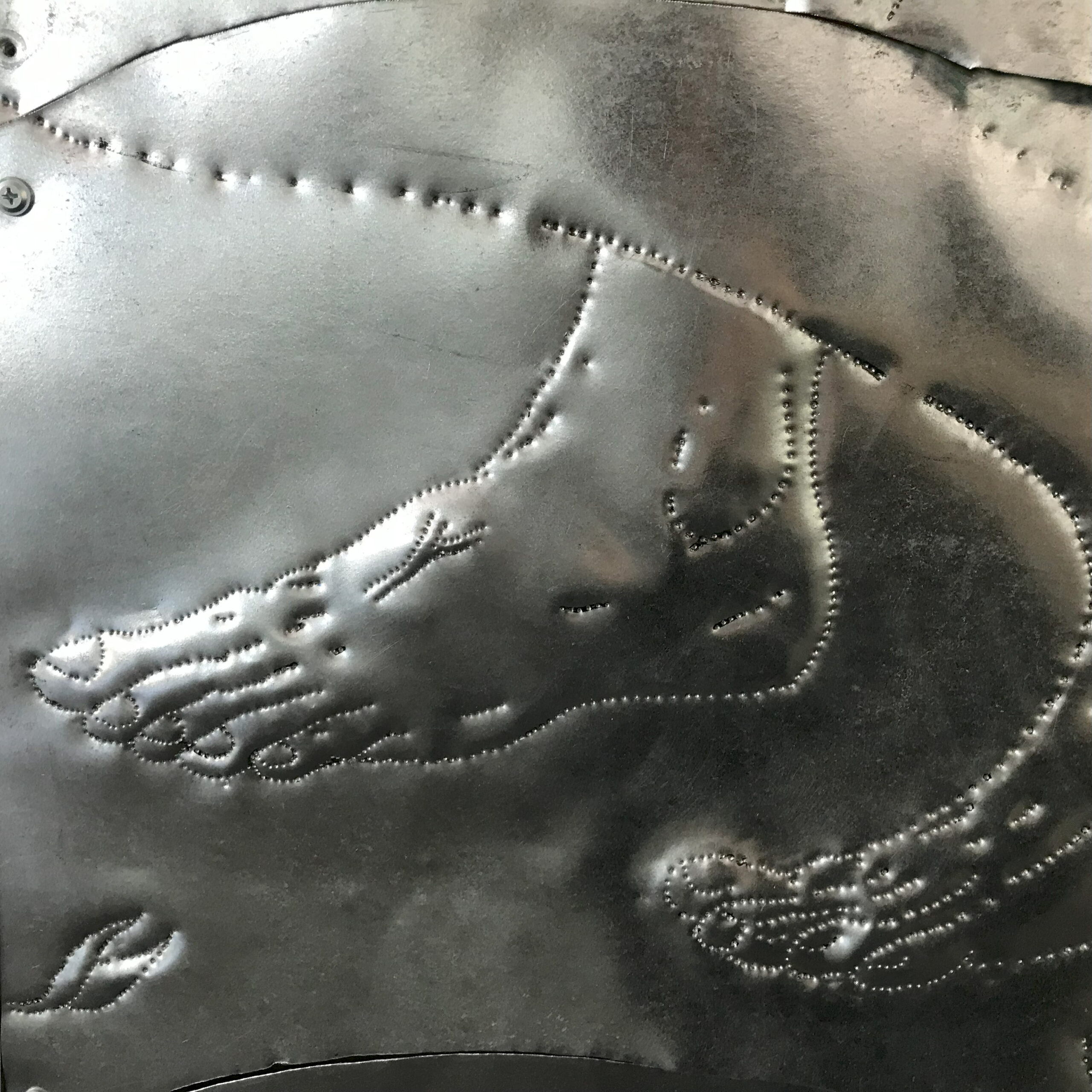 Protection Spell – devotional offerings hammered into steel and materials reclaimed from construction sites. These images merge spiritual symbols with those of labour. In workplaces where we spend much of our finite lives often without purpose, community or solace, these objects ask: Do we have a collective need for the immaterial as well as the material?